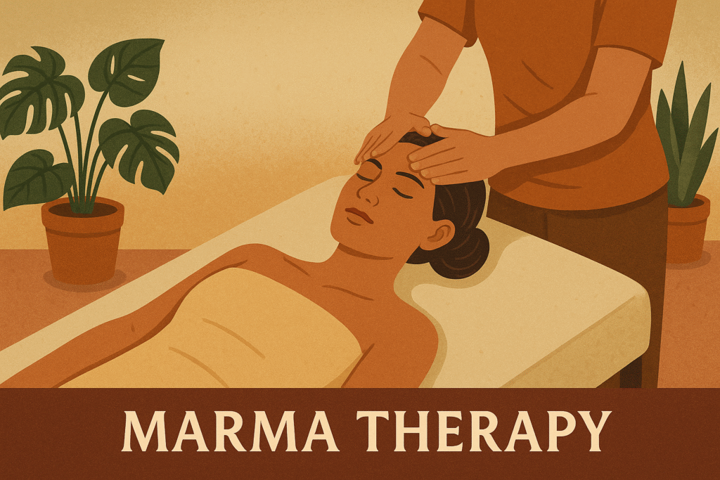 Marma Therapy is a ancient healing science from vedic traditions. It is a technique that gently promotes the free flow of prana (life force) by releasing energy blocks and revitalizing the entire system. This gentle form of bodywork operates at various levels, including physical, mental, and subtle bodies. Marma‘s focus on subtle energy points involves opening up energy channels increasing energy and vitality, and alleviating stress and disease.
