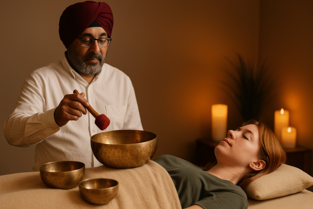 The reported benefits of Tibetan sound relaxation therapy include stress and anxiety reduction, improved sleep, emotional balance and clarity, physical pain alleviation. Clinical and experimental reports have consistently linked singing-bowl interventions to acute relaxation. Studies have reported neurophysiological shifts compatible with a meditative state, functional changes in autonomic indices and reduced cortical activity. In a study conducted, professional singing-bowl massage decreased global EEG power and made considerable reductions specifically in beta-2 and gamma bands, interpreted as a shift toward a mindful, meditative state of consciousness. Autonomic modulation heart rate decreased following a singing-bowl massage. Short sound-based sessions produced increased heart-rate variability (HRV) and reduced objective stress indices in randomized or comparative studies, consistent with increased parasympathetic tone. Himalayan singing-bowl exposure also led to greater decline in systolic blood pressure and heart rate. Multiple small trials and author-reported courses observed reductions in self-reported anxiety, improved mood/tension/wellbeing, and improved sleep quality after courses of vibroacoustic treatments.
