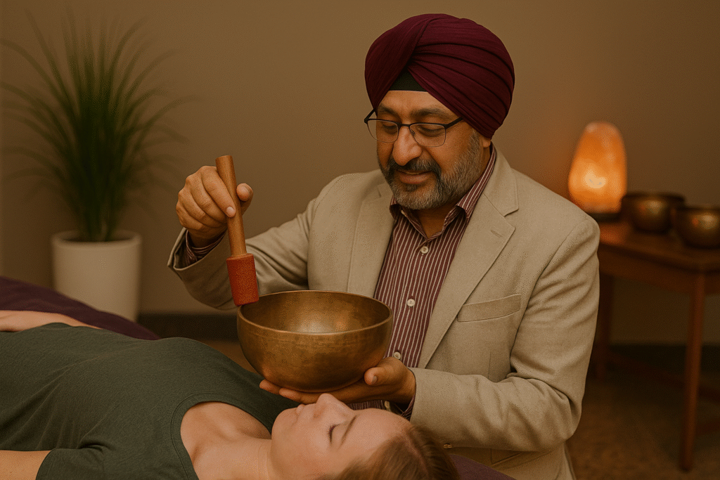 Clinical and experimental reports have consistently linked singing–bowl interventions to acute relaxation. Studies have reported neurophysiological shifts compatible with a meditative state, functional changes in autonomic indices and reduced cortical activity. In a study conducted, professional singing–bowl massage decreased global EEG power and made considerable reductions specifically in beta–2 and gamma bands, interpreted as a shift toward a mindful, meditative state of consciousness. Autonomic modulation heart rate decreased following a singing–bowl massage. Short sound–based sessions produced increased heart–rate variability (HRV) and reduced objective stress indices in randomized or comparative studies, consistent with increased parasympathetic tone. Himalayan singing–bowl exposure also led to greater decline in systolic blood pressure and heart rate. Multiple small trials and author–reported courses observed reductions in self–reported anxiety, improved mood/tension/wellbeing, and improved sleep quality after courses of vibroacoustic treatments.